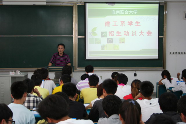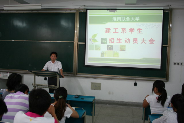 系黄主任做了动员讲话,介绍了学校以及建工系的专业设置情况和今年的各专业招生计划分布,号召全系同学在暑假期间,以开展社会实践活动的形式向社会以及广大考生和考生家长介绍我校、宣传我校,并衷心希望他们进入我校学习。