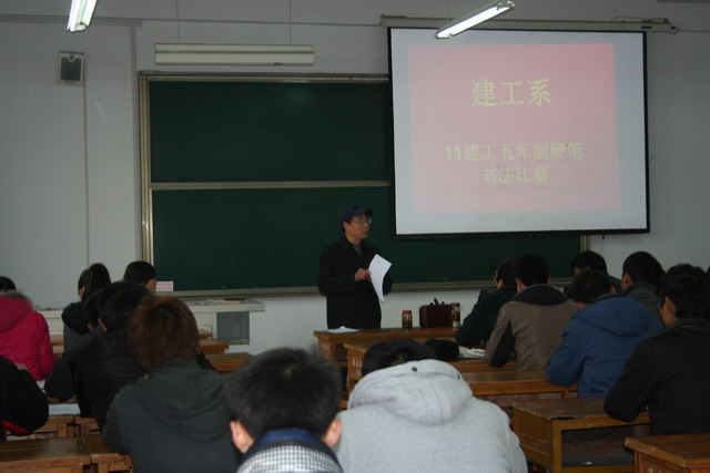 为了丰富学生的课余生活,提高建工系五年制学生的专业技能,建工系于12月6日下午三点二十,在东420教室举行了11建工五年制硬笔书法比赛。校关工委的老领导们亲临比赛现场指导并担任评委。