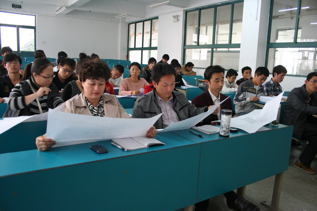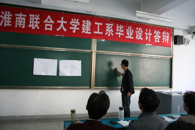 经过八周的精心准备,2012年10月28日,建工系2013届毕业设计答辩会在东117教室顺利举行,共有18名毕业生代表参加答辩。答辩组严格遵照毕业答辩的规范和要求,考核并审议学生的毕业设计水平和答辩表现。整个答辩过程按学生陈述、答辩教师审阅提问、学生应答、答辩小组评议和评分的环节进行。答辩的同学一边展示毕业设计作品、一边介绍作品的设计制作过程以及设计工作过程中的收获体会,评委教师们也结合现场答辩情况、阐述设计情况和设计报告质量等方面进行了综合评价。