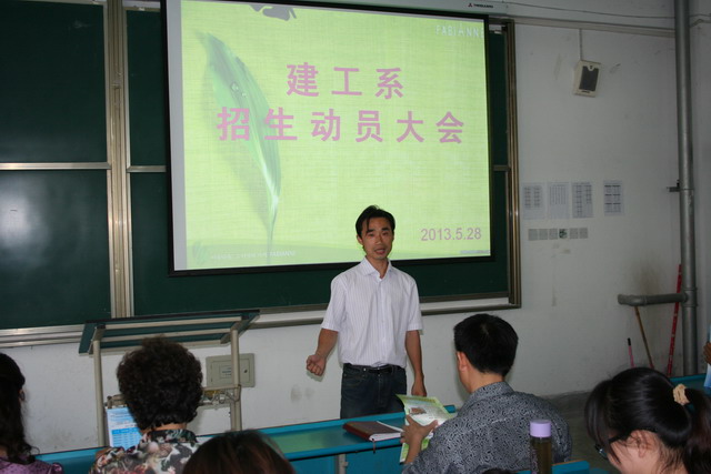 会议由系主任主持,系主任针对我校往年的招生情况和我省招生形势,向同学们做了介绍,同时宣传了我校今年的招生情况, 明确了招生任务,讲解今年学校的相关招生政策,并强调招生工作事关学校的生存和发展,随后介绍我系今年招生专业,要求同学们要联系自身情况做好招生宣传工作。建筑工程技术和工程造价专业负责人分别就各自专业特色、系部实训条件和就业前景做了详细的介绍。最后系书记对本次招生宣传提出三点要求:一、做好招生宣传的同时,注意安全;二是要结合学校和系部特色,努力做好招生宣传工作;三是要注意招生时间节点,充分发挥招生工作的主动性,为我校招生工作做出贡献。