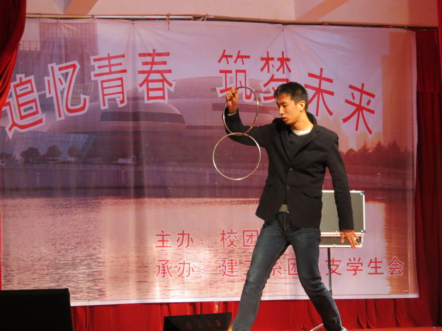 随着一群活力四射的花季少女伴着动感的音乐跳出富有旋律的开场舞《OH!》拉开了演出的帷幕,男女合唱的《爱因为在心中》唱出建工学子心中真情,精妙绝伦的《魔术》表演让人大开眼界,瑰丽多姿的民族舞《阿拉伯之夜》充满着异域风情,帅气十足的街舞表演显示出风华青春,扣人心弦的《武术》领略了中国传统文化,许老师演唱的《痴心绝对》流露出浓厚师生情,赵耀军校长对广大师生的深深祝福为演出增添了华美的诗篇。