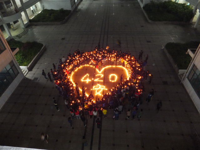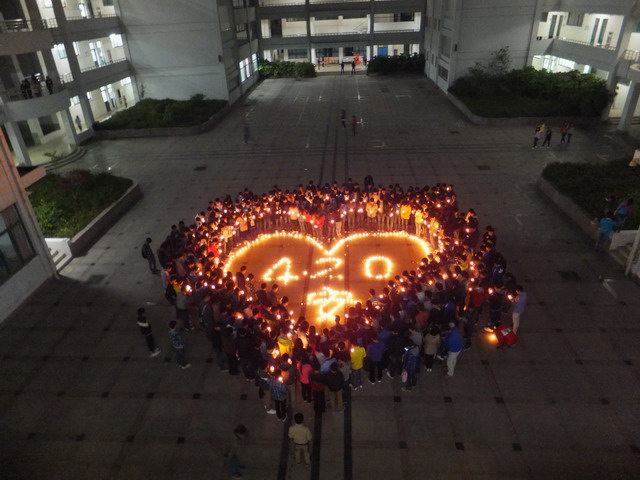 21日晚上8时02分,淮南联合大学建工系全体学生在东教学楼为雅安祈福,为四川祈福,集体默哀三分钟。