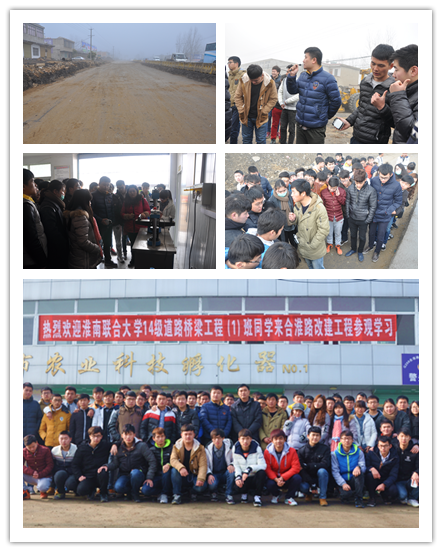 期末已至,按照教学计划,建工系全面进入实训教学阶段,通过系部领导的周密部署和任课教师的认真准备,各专业班级相关课程实训正在有序进行。12月25日上午,14级道路与桥梁工程技术专业的全体同学在段寅老师的带领下,赶赴G206合淮路改建工程项目进行参观学习。在项目现场,淮南市公路工程有限责任公司的相关领导与技术人员对项目进行了详细的介绍和讲解,通过学习,同学们掌握了公路路基路面的主要施工工艺流程和公路材料检测方法,巩固了课本知识,丰富了实践经验。建工系通过积极开展专业课程实训工作,致力于培养学生实际动手操作能力和现场经验,同时加强校企合作,通过合作交流掌握行业发展动向与企业人才需求,为下一步人才培养方案改革工作做好充分准备。