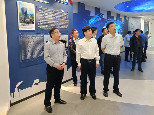 会前,中国化学三建党委副书记顾士新亲自陪同许德寿书记一行参观了公司业绩展厅。通过展厅内详实的图文资料、项目模型及多媒体演示,考察团全面了解到中国化学三建的发展历程与综合实力——作为国内化工建设领域的骨干企业,公司业务版图已覆盖全国,并成功拓展至十多个海外国家市场,业务范围涵盖煤化工、石油化工等核心工业领域,以及房建、市政、基础设施建设等民生领域,其行业影响力与项目执行力获得考察团高度认可。