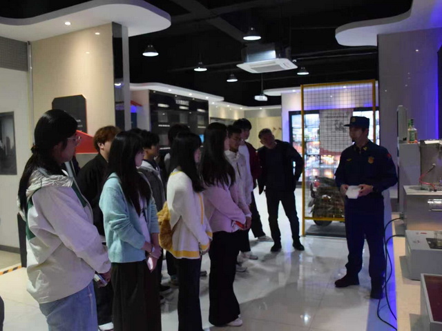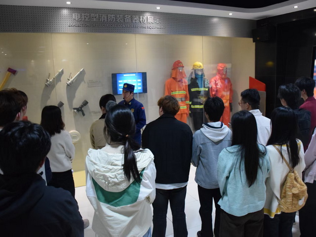 在消防宣传员的引领下,参与活动的师生走进消防科普教育体验馆。馆内精心设置了多个展区,包括电控型消防装备器材展示、消防电控标识识别、火灾档案馆、厨房火灾隐患排查体验装置等多个展区等。消防宣传员耐心细致地为大家介绍了各类消防器具的具体用途和使用场景,此外,还详细讲解了不同类型消防车的功能和操作方法。