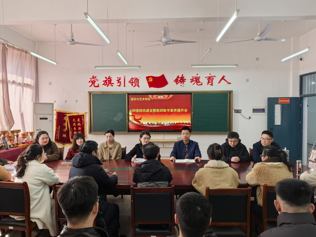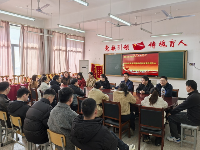 1月16日,建筑与艺术学院在建工楼会议室召开师德师风建设和教师数字素养提升研讨会,学院全体教职工参会,党总支书记陈磊主持会议。