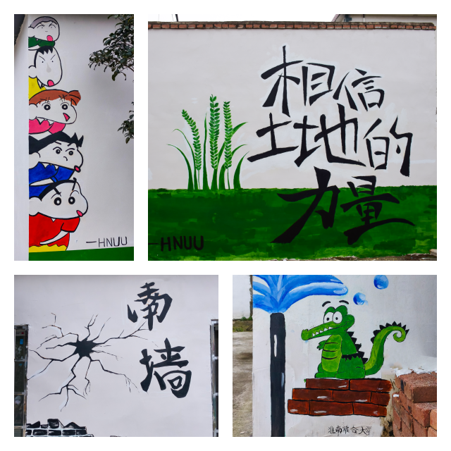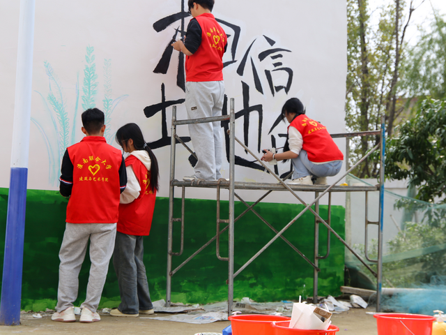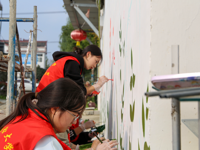 团队结合乡村文化特色,精心设计墙绘方案。从线稿勾勒到色彩晕染,师生们分工协作,将文旅打卡主题融入墙面。画笔挥舞间,一幅幅生动壁画逐渐呈现,勾勒出美丽乡村的新图景,村民纷纷驻足称赞。